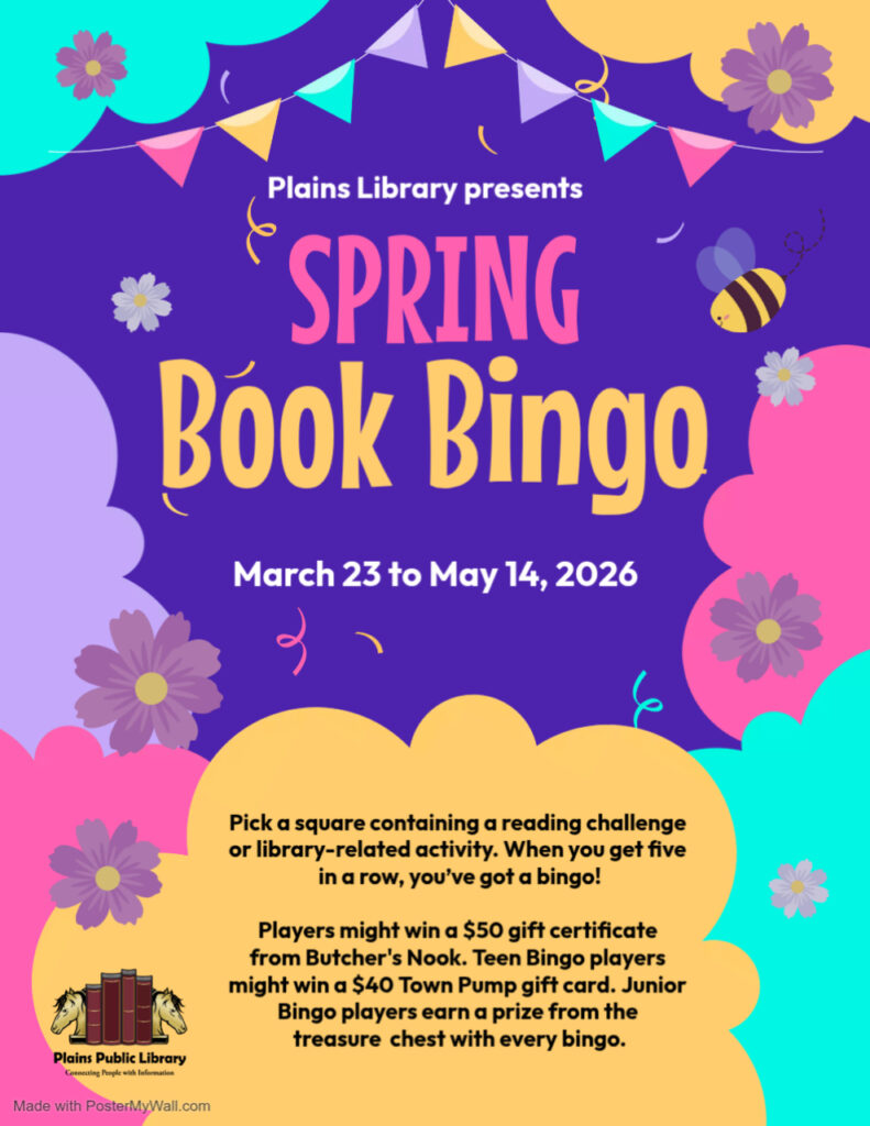 Check out Montana Library2Go at montana.overdrive.com. Access an entire library of e-books and audiobooks using your Plains Library Card. The companion app, Libby, makes your materials easy to download and on-the-go friendly.