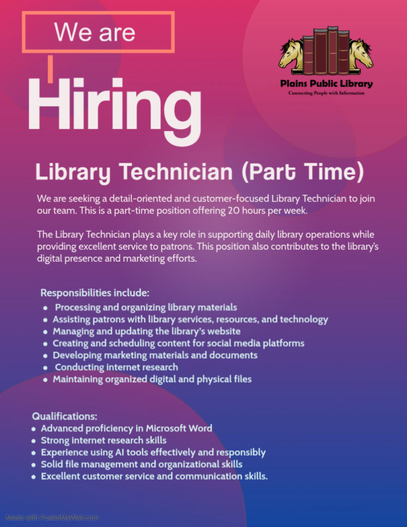 The Plains Public Library aims to connect the community to the resources necessary to live our best lives.